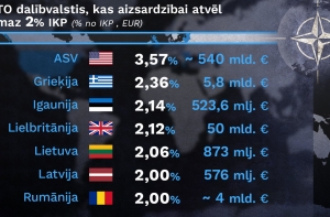 Между тем, Латвийское телевидение сообщило, какие из стран-членов НАТО нарушают финансовую дисциплину. Так, судя по инфографике ЛТВ, страны Балтии «вписываются» в необходимые 2% от ВВП.
