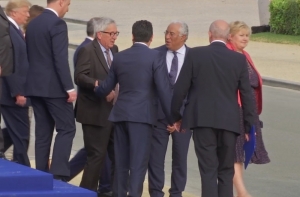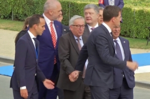 Президент Еврокомиссии Жан-Клод Юнкер обратил на себя внимания СМИ из-за странной походки. Во время ужина саммита НАТО в Брюсселе он ходил шатаясь и вынужден был полагаться на помощь мировых лидеров.