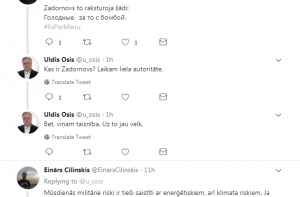 «Наши современные военные риски тесно связаны с энергетическими рисками, а также климатическими. Если мы будем тратить дополнительные 2%, чтобы освободиться от российского газа, перейдя на возобновляемые ресурсы, я был бы за», - написал Эйнар Цилинскис.