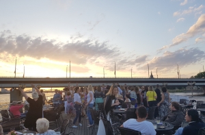 Начнем с того, что эта танцплощадка находится в движении. За три часа речного круиза вы проплывете по Даугаве по всей протяженности Старого города, насладитесь красотой величественных рижских зданий на фоне заката, проплывете под мостами, вдоволь накричитесь (здесь сумасшедшая акустика!), а приятный морской бриз хорошо освежает в жару, особенно если плясать от души.