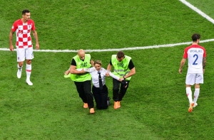 Момент, когда четыре человека выбежали на поле, а вслед за ними бросились сотрудники охраны, попал в эфир. При этом камеры, как это и предписывают принципы ФИФА, вскоре переключились на другие объекты, а режиссер трансляции включил повторы опасных моментов игры, которая на время инцидента была приостановлена.
