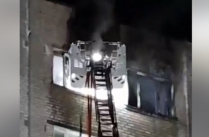 В комментариях к видео местные жители пишут, что в этой квартире проживает пожилая женщина, которую успели эвакуировать из квартиры, когда еще не было открытого пламени.