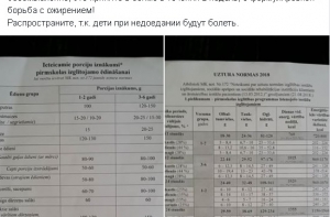 Распространите, так как дети при недоедании будут болеть», - написал пользователь, приложив к публикации фотографии с новыми нормами питания в детсадах.