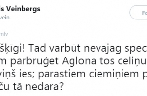 «Великолепно! Может, тогда не надо специально к визиту папы римского выстраивать дорожки в Аглоне, по которым он будет идти; для обычных гостей так ведь не делают?», - пишет Дидзис Вейнбергс.
