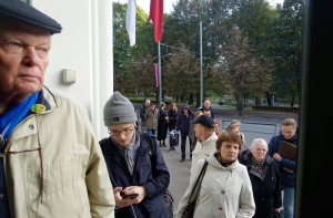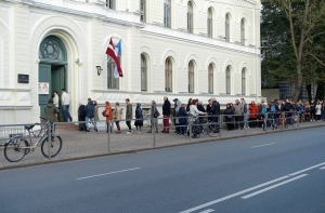 Латвийские избиратели, которые не могут принять участия в выборах 6 октября, начиная с сегодняшнего дня имеют возможность проголосовать заранее. По наблюдениям корреспондента Mixnews, люди активно пользуются такой возможностью. На двух избирательных участков №3 и №75, которые расположены в здании Первой государственной гимназии, даже выстроилась очередь.