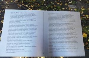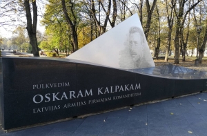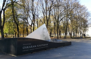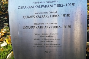 Отметим, рядом с памятником Оскару Калпаксу размещены информационные таблички, где разъясняется, кому посвящен монумент. Информация предоставлена на трех языках - латышском, английском и русском.