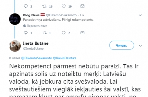 «Обвинять в некомпетентности было бы неправильно. Это сознательный шаг к четкой цели: Сделать латышский язык, как и любой другой иностранный язык. Чтобы иностранцы могли легче влиться в это государство, которое потихоньку становится аморфной европейской страной, а не государством нации латышей. Глобализация широкими шагами», - написала Инета Бутане.