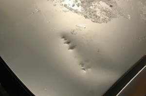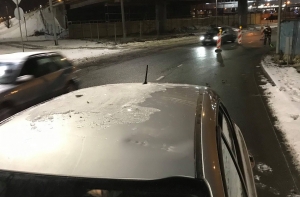 Женщина рассказала о том, что проезжая под мостом, она услышала громкий стук, доносившийся с крыши автомобиля.