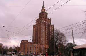 Здание высотой в 21 этаж находится в центре Риги и построено по образцу московских сталинских высоток.
