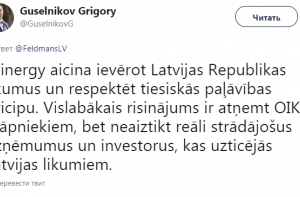 «Winergy всего лишь призывает соблюдать законы Латвийской республики и уважать основные принципы законности. Самым лучшим способом в решении проблемы считаю отнять КОЗ у мошенников, но не трогать реально работающие предприятия и инвесторов, которые доверились латвийским законам», - написал Гусельников.