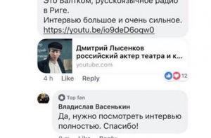 В России есть смелые деятели культуры, которые не боятся высказывать свое мнение. Об этом оппозиционный российский политик Алексей Навальный написал на своей странице в соцсети Facebook, опубликовав также видео интервью с российским актером Дмитрием Лысенковым на радио Baltkom.