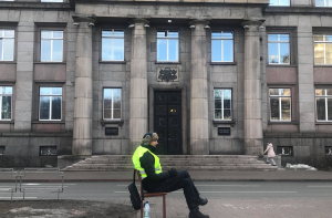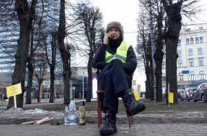 В понедельник напротив здания правительства находится гражданин Латвии Эдвард Курманс, он намерен голодать «всухую» в течение 24 часов.