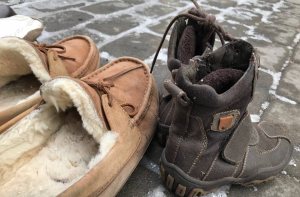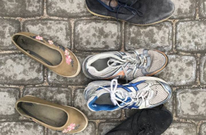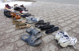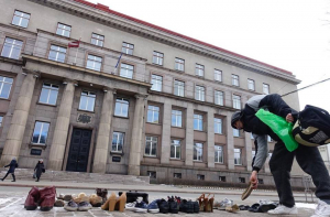 У здания Кабинетов министров начался народный флешмоб, в ходе которого люди приносят обувь своих близких, отправившихся за границу в поисках лучшей жизни.
