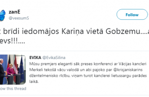 Премьер-министр Латвии Кришьянис Кариньш 11 марта находился с рабочим визитом в Германии, где встретился с канцлером Германии Ангелой Меркель, с которой общался на немецком языке. Этот факт не остался незамеченным пользователями латвийского сегмента соцсети Twitter.