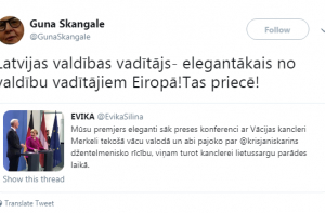 «Большая радость слышать/видеть, что у нас премьер, умеющий общаться на иностранном языке. Кариньш во время пресс-конференции с Меркель говорит по-немецки», - пишет докторант Парижского Института политических исследований Уна Бергмане.