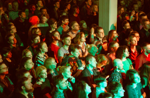 Публика всегда была дополнительным участником и сильной стороной «АукцЫона». Выдающийся композитор-авангардист, а также друг и соратник Леонида Федорова Владимир Мартынов в одном из интервью остроумно заметил, что людей, которые приходят на Леню, и публикой-то назвать нельзя – это, скорее, некое сообщество. Первое – открытое, public, второе – закрытое, камерное. Вот и вечер в Таллине получился камерным, когда перед концертом молодой хипстер недоверчиво смотрит на старого рокера, а после у гардероба они дружно спорят, что же значит таинственное «Хомба, метели дамба, и геликомба, и топинамба».