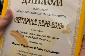 Журналисты радио Baltkom Вадим Радионов и Анна Смирнова стали лауреатами международного конкурса журналистов «Янтарное перо 2019», ежегодно проводимого посольством России в Латвии. В номинации «Лучший аналитический материал по российской тематике» (категория радио) победа досталась программе «Встретились, поговорили» с участием известного российского тележурналиста Владимира Познера.