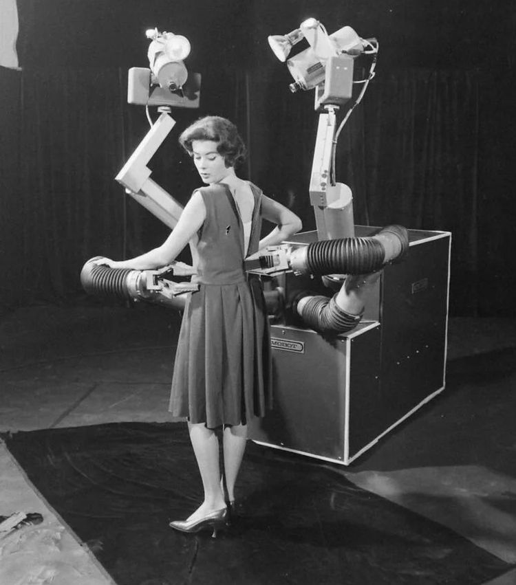Этот «Мобот» от Hughes Aircraft – робот-помощник для тех, кто нуждался в поддержке при одевании. Калифорния, 1961 год: предтеча гаджетов, с душой заботы в металлическом корпусе.