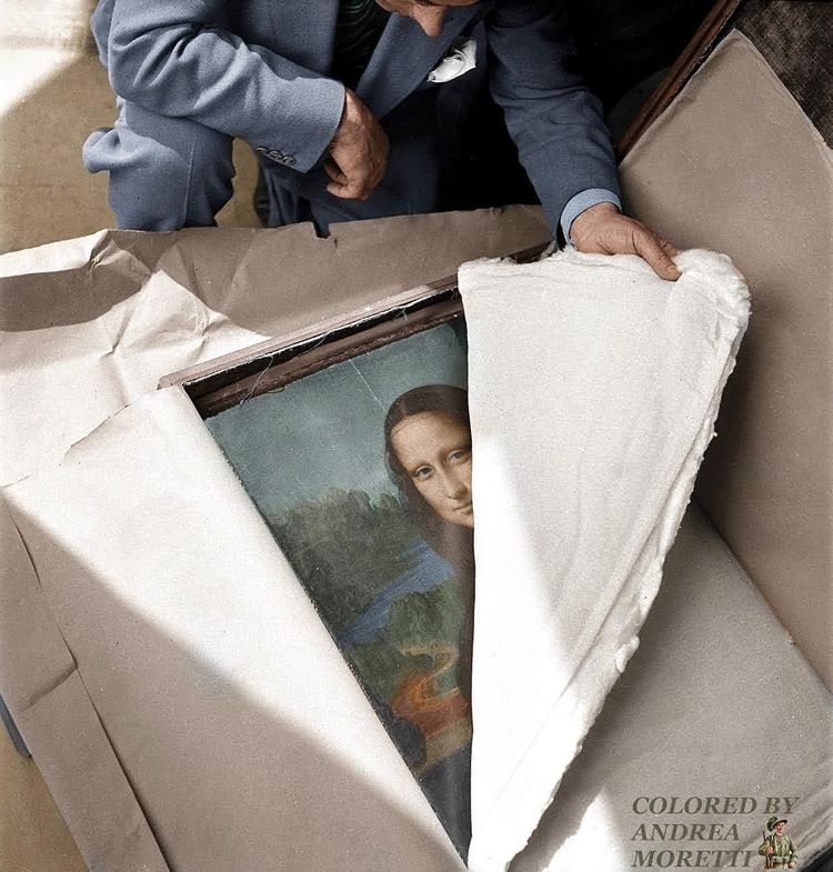 Конец Второй мировой: Мона Лиза возвращается в Лувр в 1945 году, Париж. Фото полное триумфа и облегчения, как символ возрождения после хаоса.