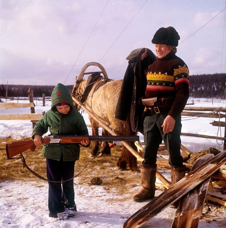 Сибирь 1975 года: охотник с сыном - фото, полное связи поколений и суровой красоты природы, что трогает за живое своей искренностью.