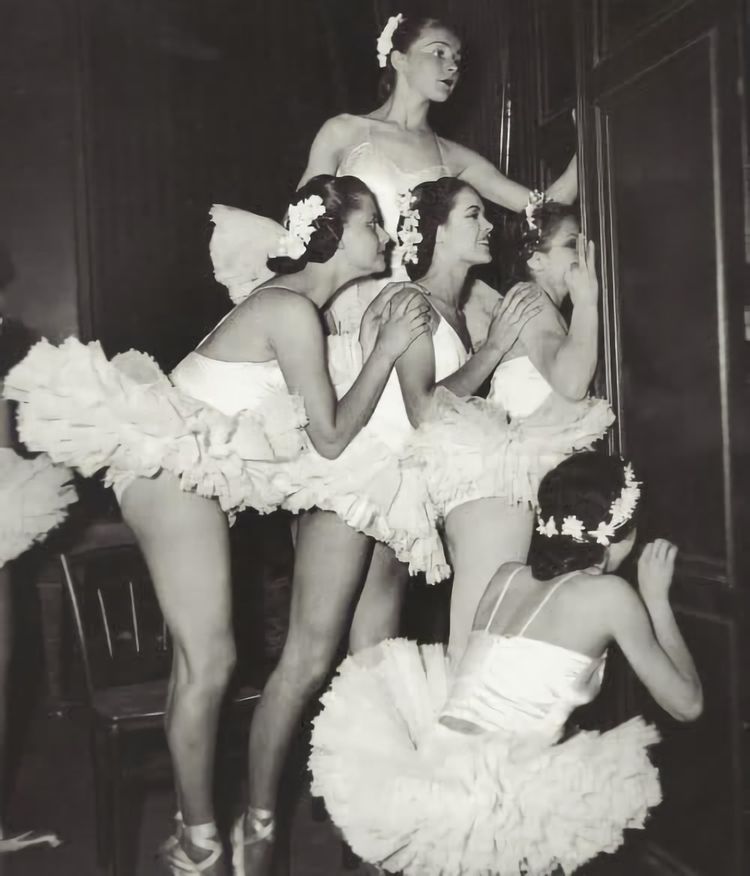 Представьте себе Париж 1948 года: балерины, полные любопытства, заглядывают в мужскую раздевалку. Этот кадр ловит ту игривую искру, что делает историю такой человечной и близкой.