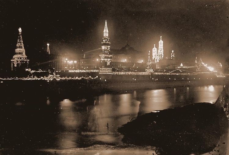 Кремль в 1896 году, украшенный тысячами электрических лампочек к коронации Николая II, - это как фейерверк из прошлого, где технологии только-только входили в жизнь, зажигая огни надежд и праздника.