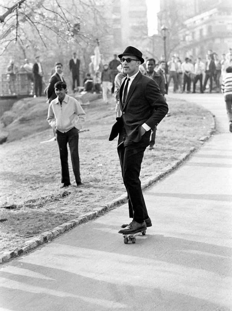 Мужчина на скейтборде в Центральном парке, Нью-Йорк, 1965 год.