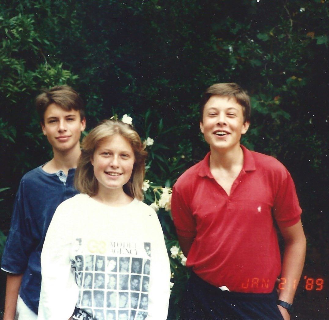Илон Маск с братом Кимбалом и сестрой Тоской, ЮАР, 1989 год.