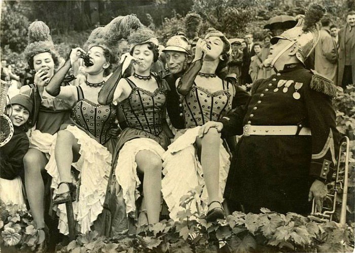 Танцовщицы из Мулен Ружа на фестивале вина, 1950-е.