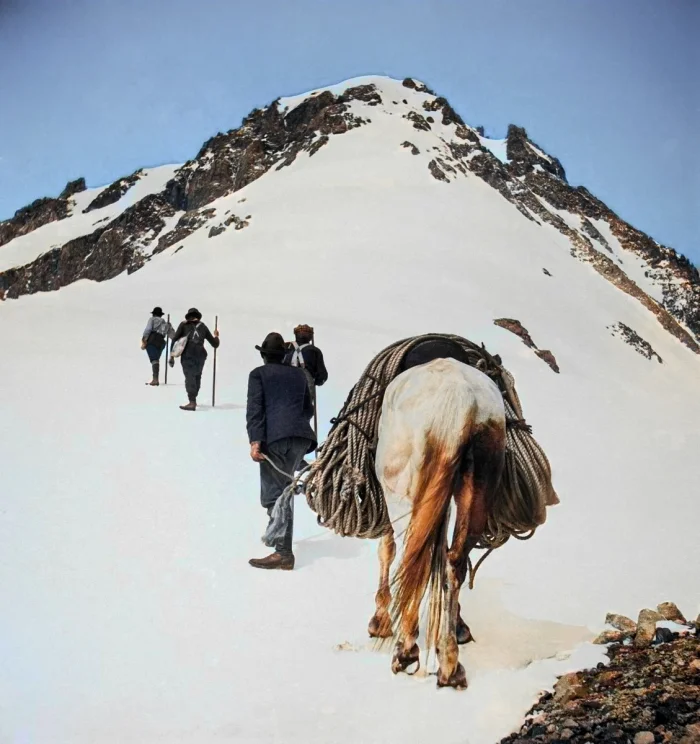 Величественная гора Худ в Орегоне - символ дикой природы США. Этот снимок 30-х годов передаёт величие вулкана и его притягательность для путешественников.