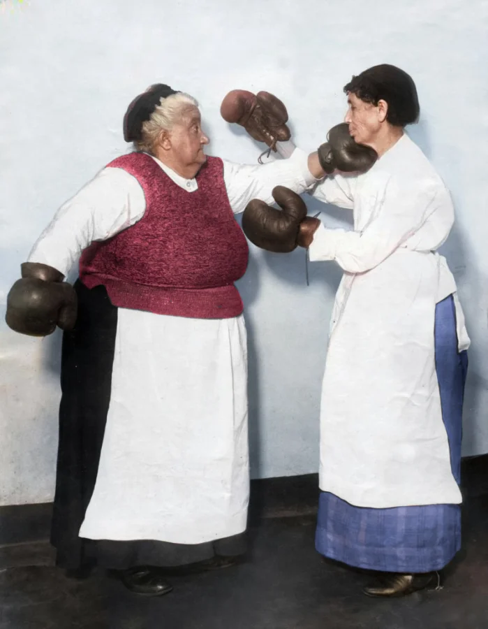 Неожиданный кадр: пожилые дамы в боксёрских перчатках! Этот снимок из Нью-Йорка 1925 года доказывает, что страсть к спорту не знает возраста.