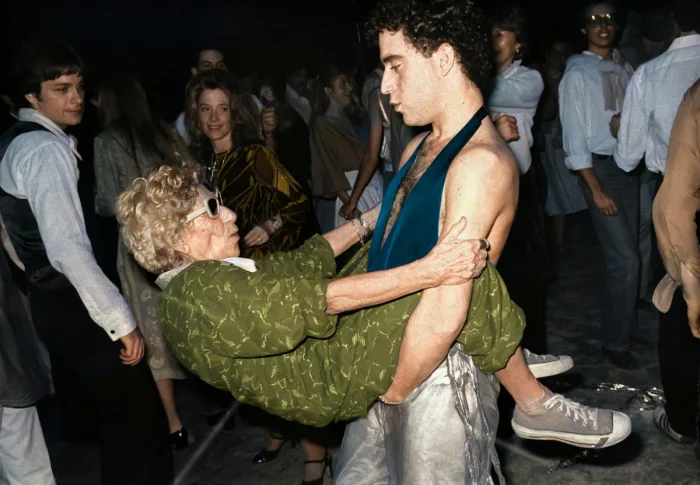 Салли Липпман, известная как Диско Салли, танцует в легендарном клубе Studio 54. Этот снимок - яркий символ эпохи диско, свободы и самовыражения.