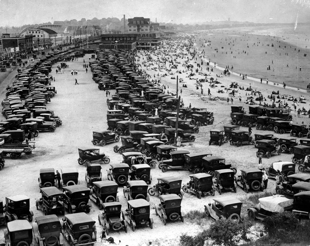 Леди и джентльмены приехали искупаться на пляж Нантаскет Бич, штат Массачусетс, 1920-е годы.