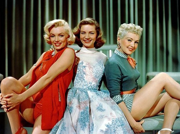 Мэрилин Монро, Лорен Бэколл и Бетти Грейбл, 1953 год.