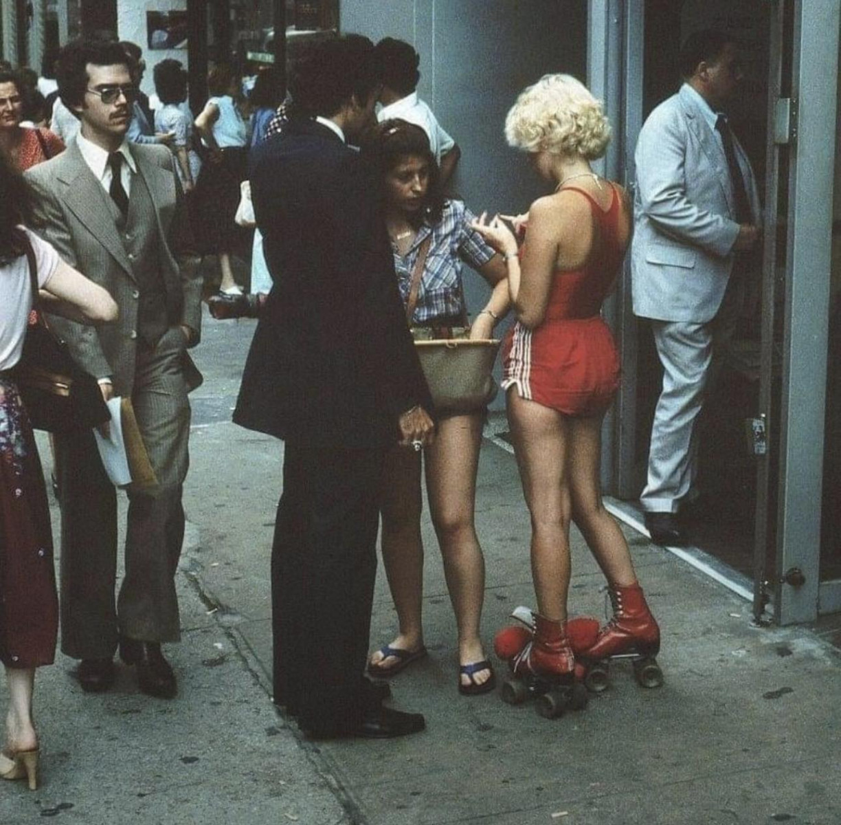 Роллерша среди пешеходов, центр Манхэттена, Нью-Йорк, 1979 год.