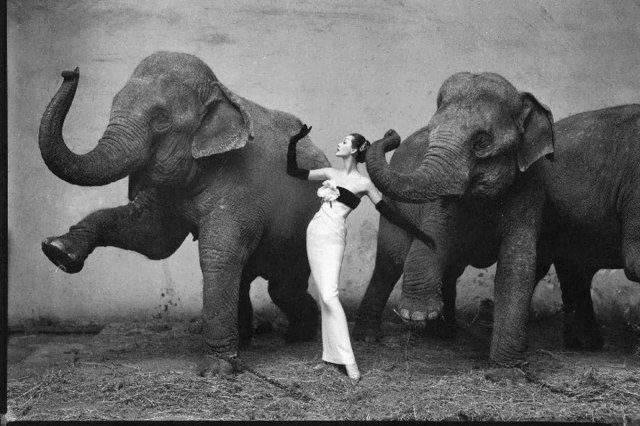 Фотография Ричарда Аведона «Довима со слонами в вечернем платье от Dior», снятая в 1955 году в Париже, стала знаковым произведением искусства.