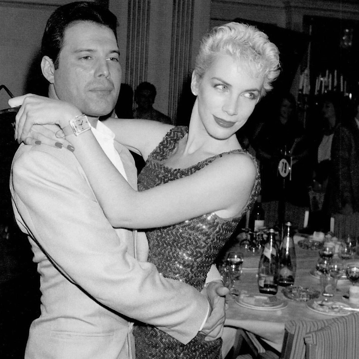 Фредди Меркьюри и Энни Леннокс на церемонии вручения премии Айвора Новелло 15 апреля 1987 года в отеле «Гросвенор Хаус» в Лондоне.