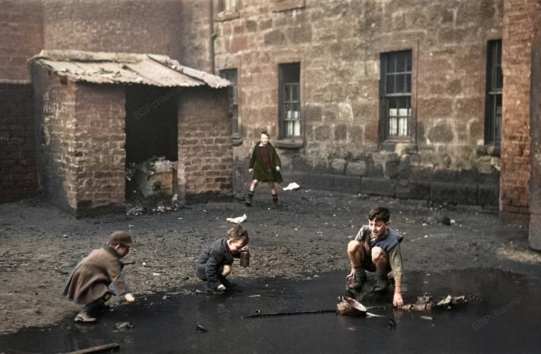 Дети играют во дворе «Горбалс», печально известного трущобного района Глазго. Шотландия, январь 1948 года.