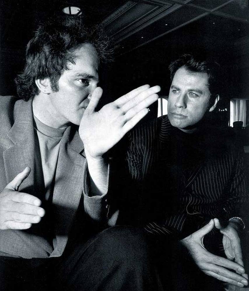 Квентин Тарантино и Джон Траволта во время съемок фильма «Криминальное чтиво», 1993 г