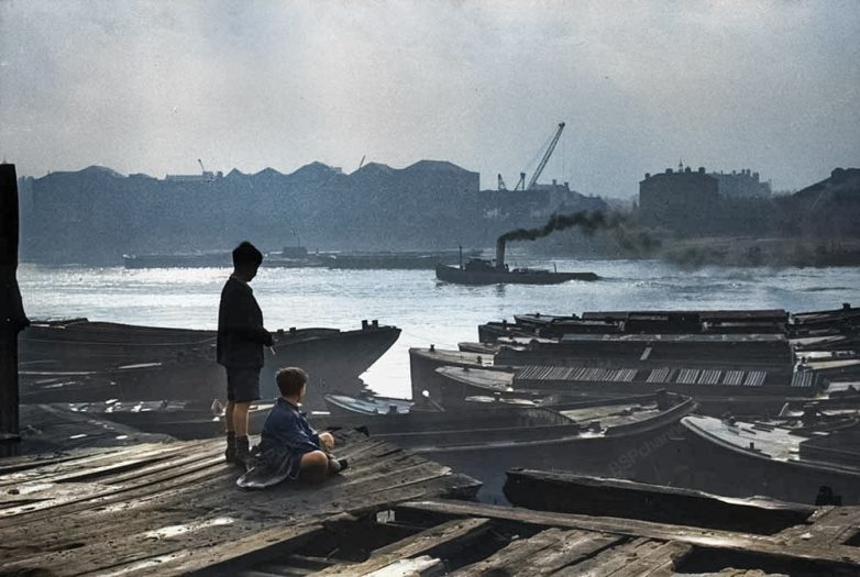 Буксир проплывает по Темзе, Лондон, 1949 год.