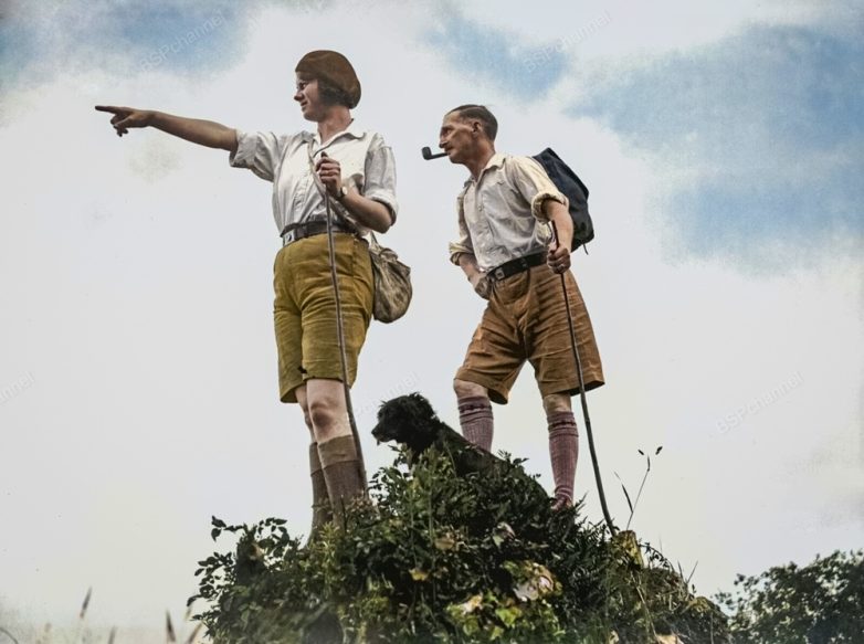 Английская пара мистер и миссис Н. Смит во время прогулки по северному Девону, 1931 год.