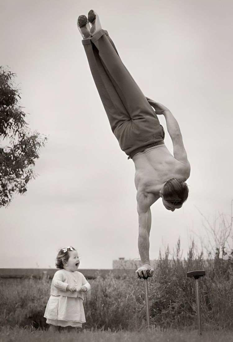 Отец демонстрирует свое мастерство на удивление маленькой дочери, Австралия, 1940-е годы