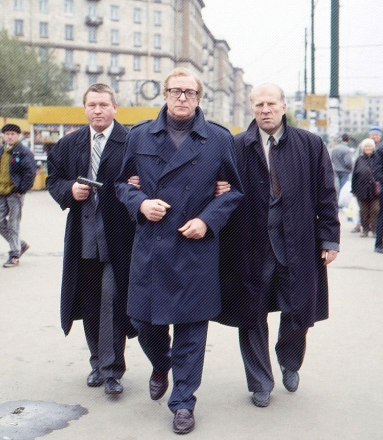 Майкл Кейн, Александр Завьялов и Анатолий Сливников на съёмках фильма «Полночь в Санкт-Петербурге», 1995 год