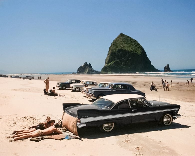 Автомобили на пляже Кэннон-Бич, побережье Орегона, 1960-е.