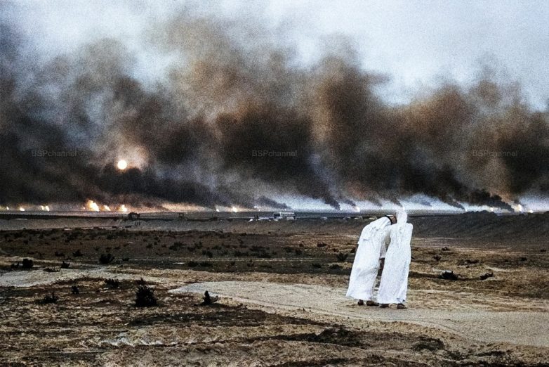Одно из самых драматичных и визуально потрясающих последствий войны в Персидском заливе. Отступая под натиском коалиционных сил, иракские войска подожгли более 600 нефтяных скважин, превратив кувейтские пустыни в адское зрелище: чёрные столбы дыма затмевали солнце, небо стало багровым, а земля - покрытой нефтяной жижей. Пламя бушевало месяцами, пока международные спасательные команды, включая опытных «нефтяных пожарных» со всего мира, не справились с огнём.