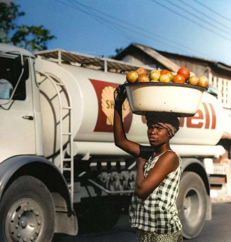 Женщина с фруктами на голове. Фритаун, Сьерра-Леоне, 1960 год.