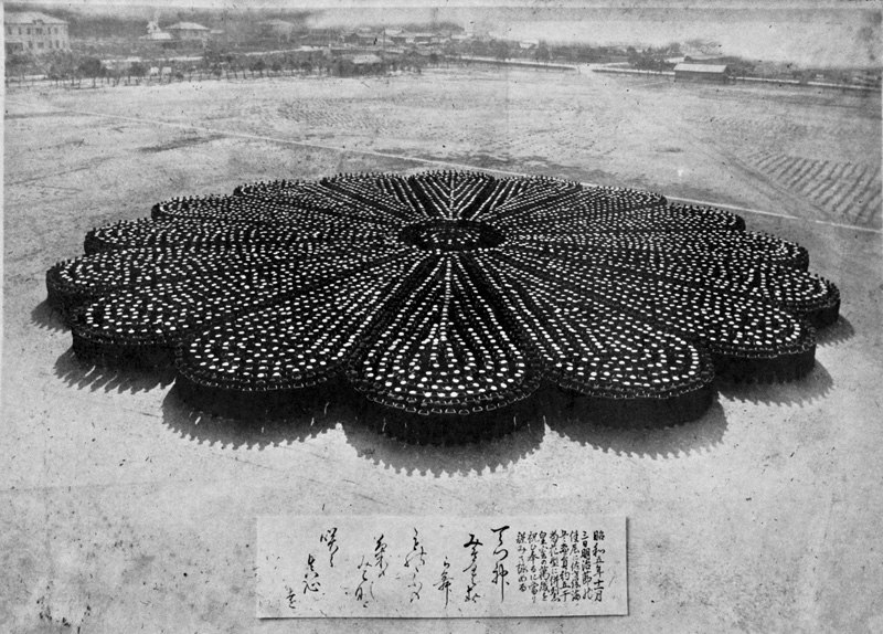 Японские моряки, выстроенные в форме хризантемы (Императорская печать Японии - символ в виде 16-лепестковой хризантемы)