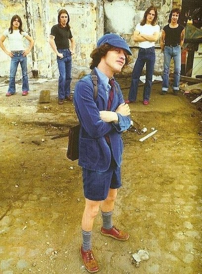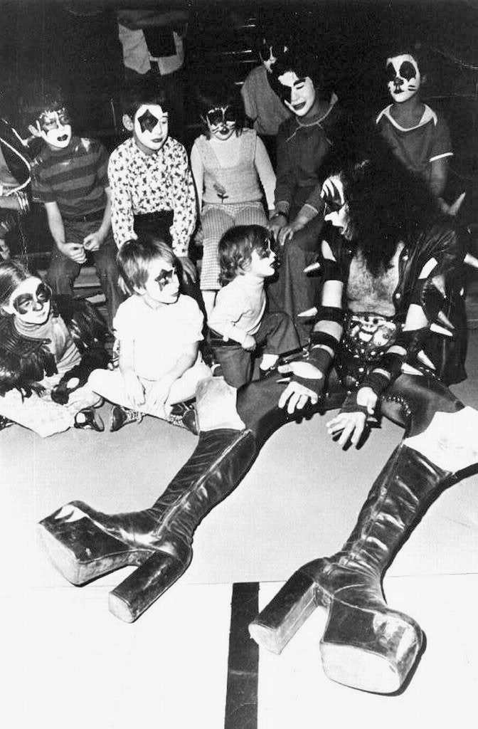 Вокалист группы Kiss Джин Симмонс вместе маленькими с фанатами, 1970-е