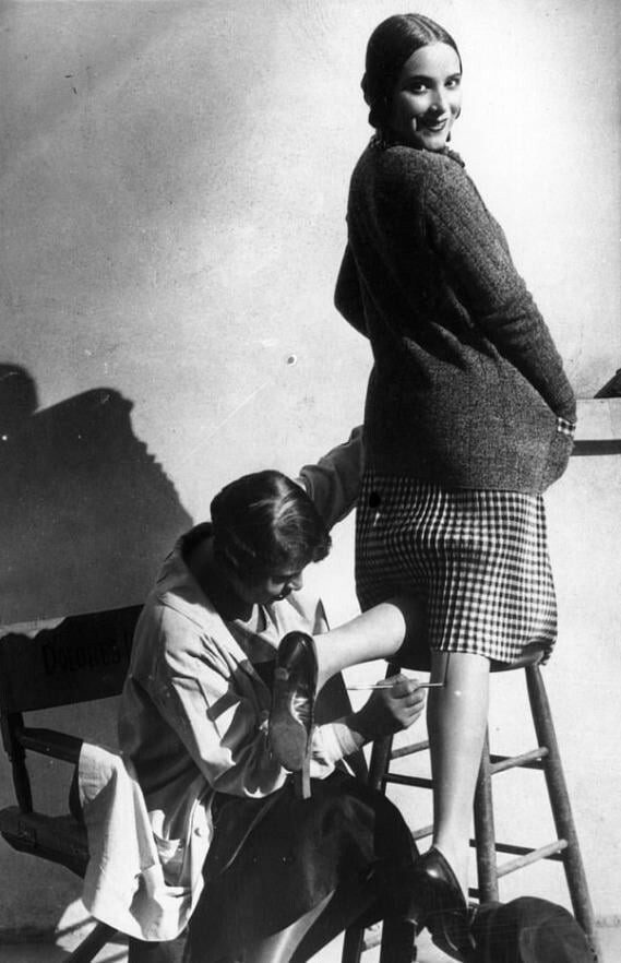 Женщине рисуют шов на ноге, чтобы создать видимость, что на ней чулки, 1926 год