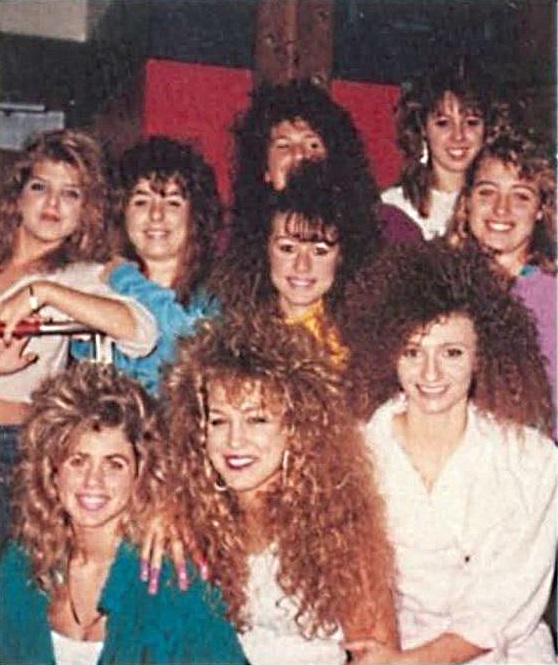 Яркие образы эпохи 1980-х: группа девушек на снимке тех лет